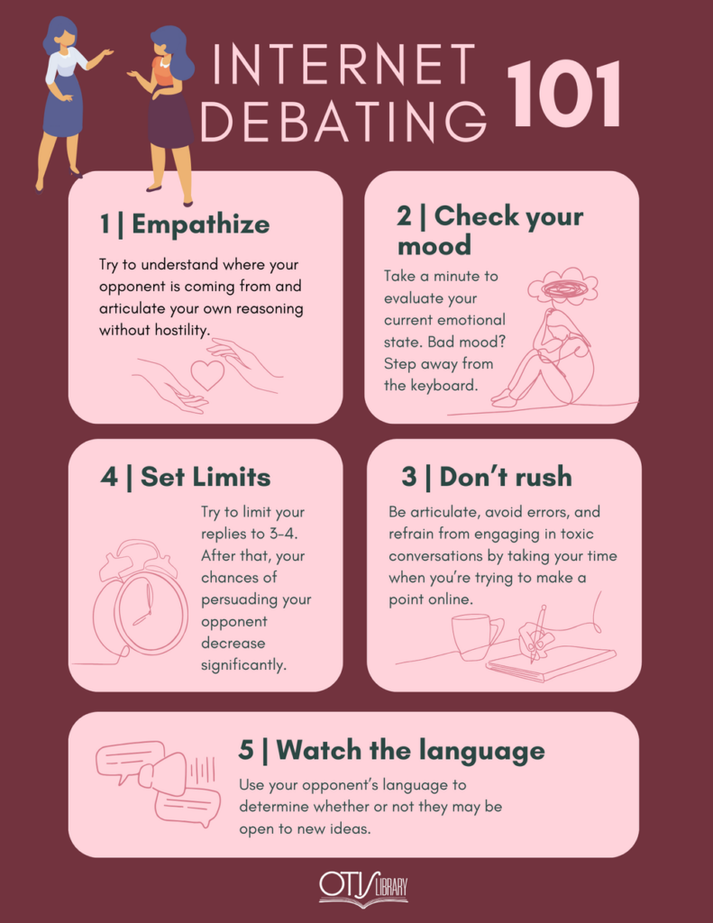 Overcoming confirmation bias requires consistent effort, as well as a willingness to seek out and process information that does not align with our existing beliefs. This can be uncomfortable work, but it is the most effective way to broaden our collective worldview and slow the spread of mis- and dis-information within our online communities. To avoid confirmation bias, make an effort to pursue contrary opinions and try to understand the rationale behind them. It is also important to consume multiple sources of information that represent multiple points of view. As always, consistent fact checking should be an integral part of this process – and remember- your local librarians are always available to help you navigate and process information in all environments, whether it be in the library or online.